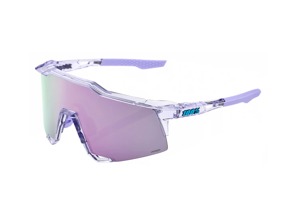 Gli occhiali da sole 100% SPEEDCRAFT hanno montatura ultraleggera colore LAVANDA TRASPARENTE, l'occhiale monta lenti CR39, colore GRIGIO/VIOLA tinta unita Cat. 3.