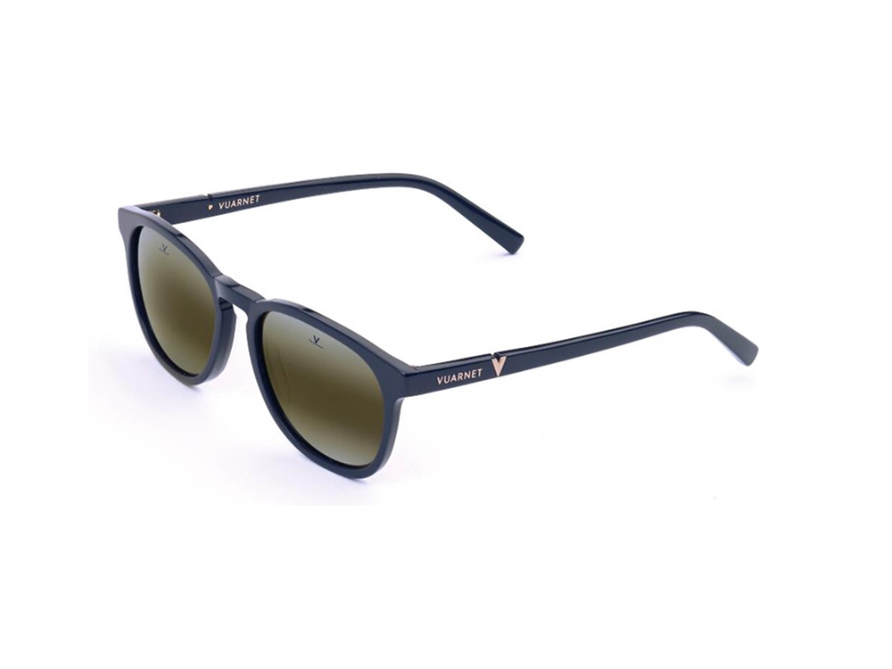 Gli occhiali da sole Vuarnet VL1622 hanno montatura in acetato colore BLU, l'occhiale monta lenti in vetro, colore MARRONE specchiato tinta unita Cat. 3.